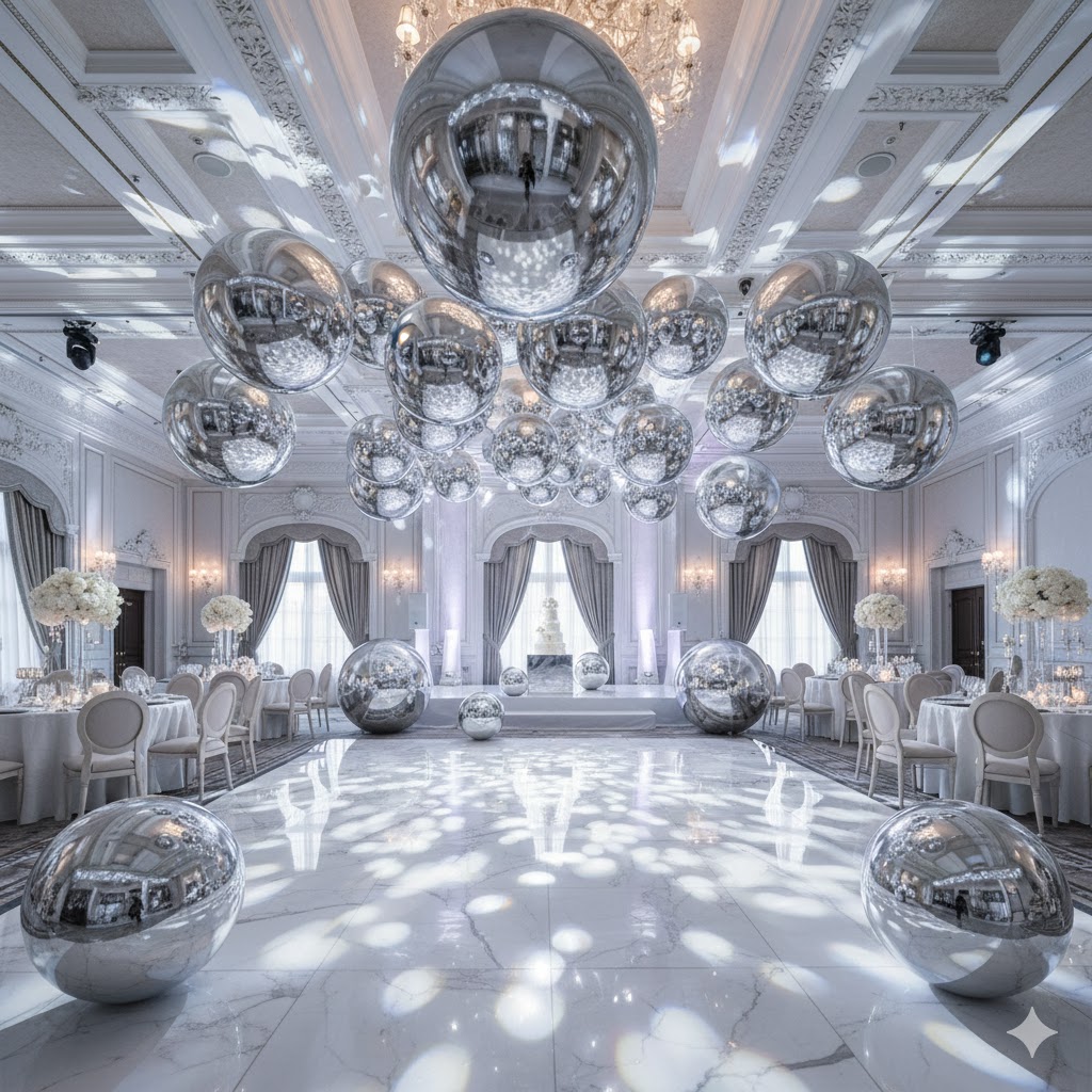 silver mirror balls instantly elevate your setup and create a premium atmosphere guests love to photograph.